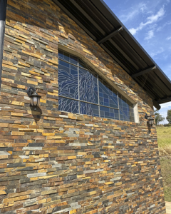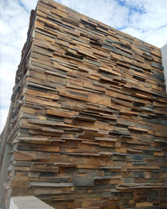 Os filetes de Pedra Ferro são peças individuais com altura padrão (de 5cm, de 3cm ou irregulares) e comprimentos irregulares. Essa característica despadronizada garante uma atmosfera moderna e descontraída. É uma opção magnífica para fachadas comerciais e muros residenciais, onde a pedra harmoniza com a vegetação natural, selando a ambientação com sofisticação.